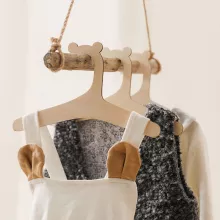 These **baby wooden hangers** stand out for their combination of durability, functionality, and adorable design. Crafted with smooth edges to protect delicate fabrics, they are a great addition to any nursery or toddler room. The neutral wood design also complements a variety of room décor styles, making them both a practical and aesthetically pleasing choice for any new parent.
