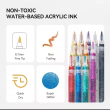 • Quick-Drying and Shimmering Finish: Acrylic ink that dries fast and leaves a glossy, sparkling effect on any surface.