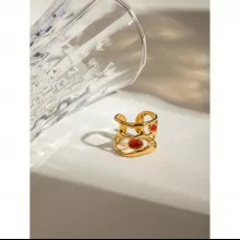 Enhance your jewelry collection with the stunning 18K Gold Plated Red Agate Hollowed-out Opening Ring. Designed for women who appreciate both classic elegance and modern charm, this ring features a beautifully polished red agate stone set in a delicate, hollowed-out frame. Crafted from high-quality stainless steel and plated with 18K gold, this ring brings sophistication and durability together, creating the perfect piece for any occasion.