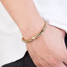 Introducing the ultimate accessory for the modern man who dares to stand out – our Punk Rock Bicycle Chain Bracelet. Meticulously crafted from high-quality stainless steel and lavishly coated in 18k gold, this bracelet is not just a piece of jewelry; it’s a statement. Its robust link chain design exudes a rugged charm that perfectly complements your bold style, whether you’re riding through the city streets or commanding attention at a social gathering.