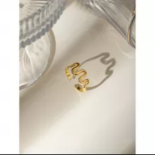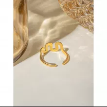 This stunning wavy shaped opening ring is not just a piece of jewelry—it’s a statement of style and sophistication. The 18K PVD gold plating adds a luxurious touch that lasts, while the stainless steel construction ensures that this ring remains a staple in your collection for years to come. Its minimalist yet striking design makes it ideal for any occasion, from casual outings to elegant parties. Whether you’re treating yourself or looking for the perfect gift, this ring is a versatile and thoughtful choice.