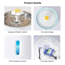 Provide your beloved pets with a continuous stream of fresh, filtered water using our state-of-the-art 2.4L Stainless Steel LED Cat & Dog Water Fountain. Designed to prioritize the health and wellness of your pets, this water dispenser is an essential addition to your pet supplies.