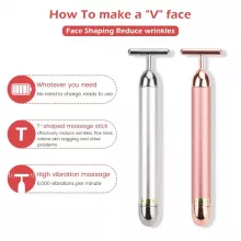 Experience a luxurious way to rejuvenate your skin with the 24K Gold Vibrating Facial Roller Massager. Designed to offer a spa-like experience from the comfort of your home, this T-Shaped massager is your secret to radiant, tightened, and younger-looking skin.