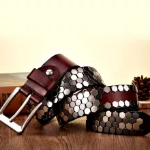 Designed for men who want to express their bold sense of style, this rivet-studded belt is more than just an accessory—it’s a statement piece. The genuine leather ensures durability, making it a practical choice for long-term wear, while the striking rivet details give it an edge that stands out. Whether you’re pairing it with jeans for a casual day or styling it with leather for a night out, this belt will instantly elevate your look.