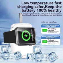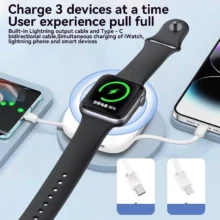 - 3-in-1 Functionality: Charge up to three devices simultaneously, be it your smartwatch, Android, or Apple phone.