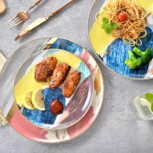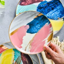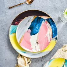 Enhance your dining experience with the stunning 6-piece Ceramic Dinnerware Set featuring exquisite gold inlay and a vibrant cloud design. This set combines elegance and modern design, making it the perfect addition to your dining table. Ideal for serving dinner, desserts, or snacks, these colorful plates are perfect for both casual meals and special occasions. Available in two sizes, 8 inches (20cm) and 10 inches (27cm), these plates are crafted from high-quality ceramic, ensuring both durability and sophistication.