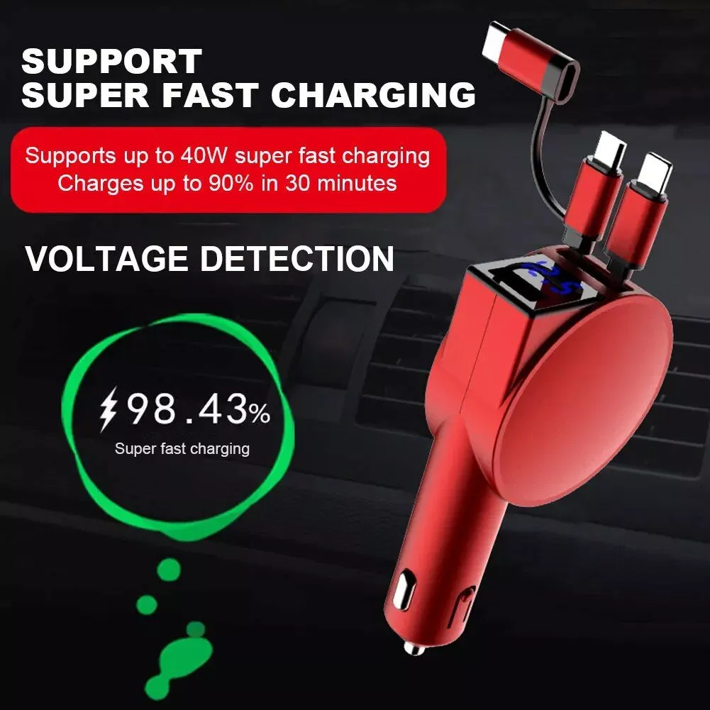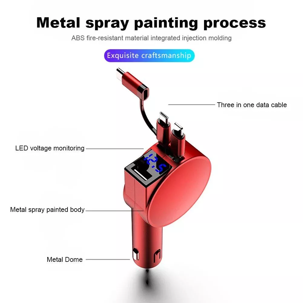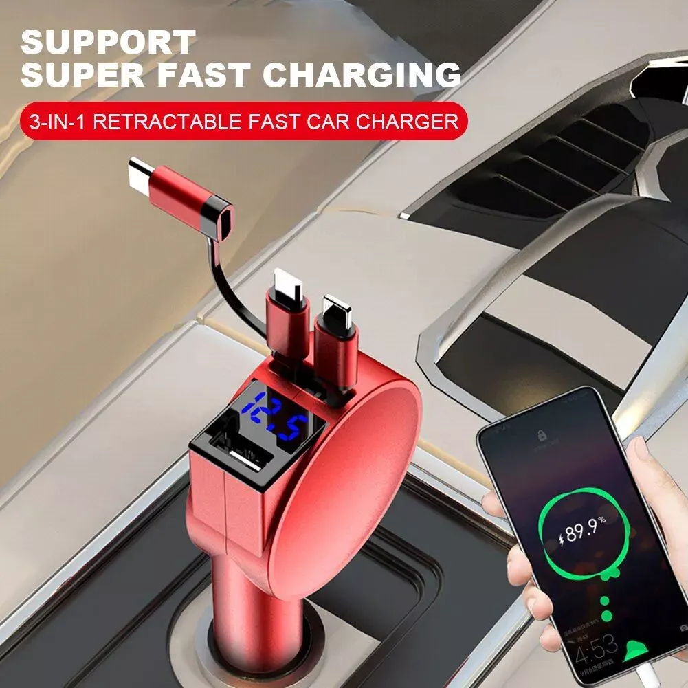 60W 3-in-1 Retractable Car Charger with Fast Charge Technology
