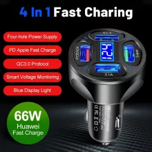 Never get stuck with a dying phone again! Introducing our 66W 4-Port Fast Charging USB Car Charger – designed to ensure your devices remain charged and ready wherever your travels take you. With its sleek and compact design, you can easily plug it into your car and charge multiple devices simultaneously.