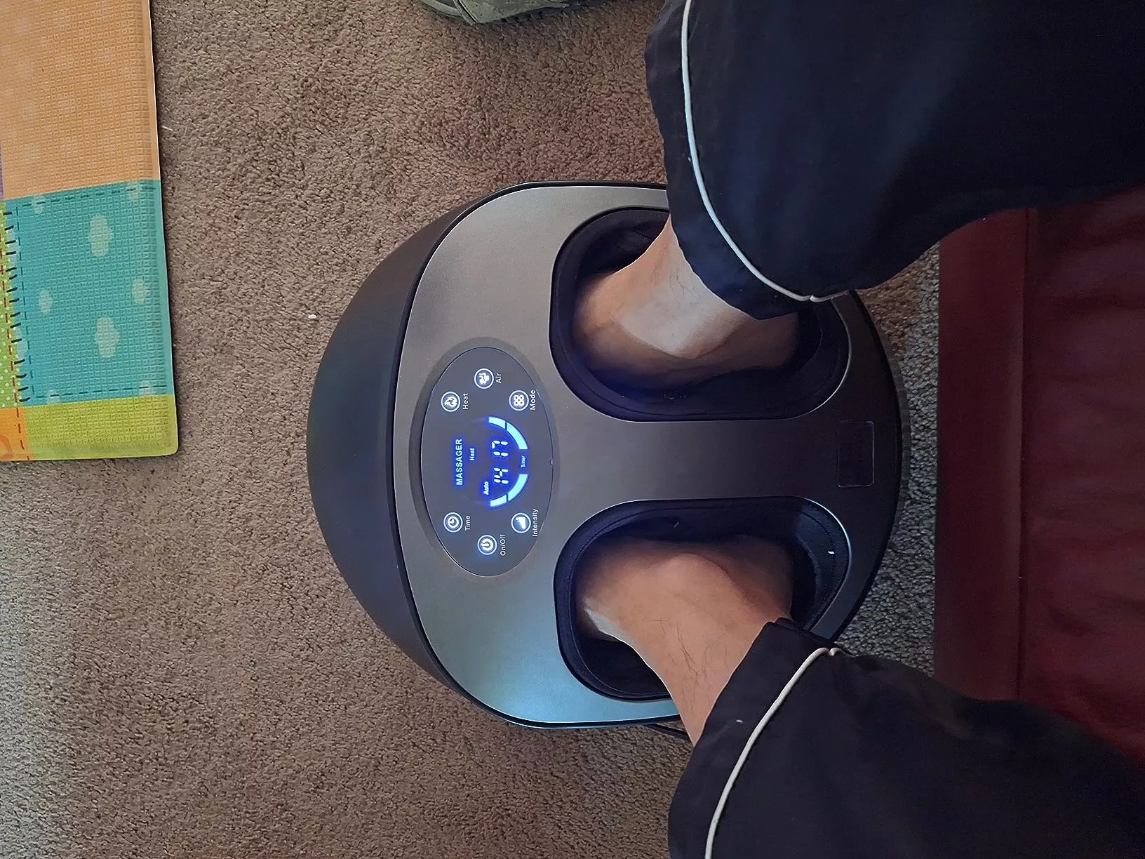 My 25-year-old daughter is hooked on this foot massager. She uses it at least twice a day and swears by its stress-relieving powers. While I found it alright, she's head over heels for it. It offers options for squeezing, heating, and massaging, with controls accessible via remote or directly on the massager. It feels like magic fingers soothing your feet. Best purchase ever!