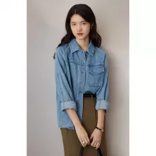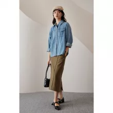 This denim shirt jacket is designed for the modern woman who values both style and practicality. Its timeless denim fabric and classic design make it a versatile addition to any wardrobe. Dress it up with a pair of tailored trousers for a polished office look, or pair it with jeans and boots for a casual weekend outfit. The loose fit and raglan sleeves allow for easy layering, making it a functional yet fashionable choice for any autumn day.
