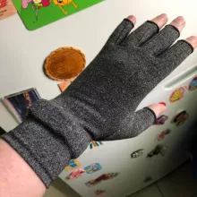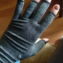This is my second pair of compression gloves. I have osteoarthritis in all my fingers and these gloves have been extremely helpful with the chronic ache. I wear them while sleeping and my hands are less stiff and sore in the morning. They also help with pain while I'm working as a cashier. I bought this second pair so while one is air drying after being washed, I have the other to use.