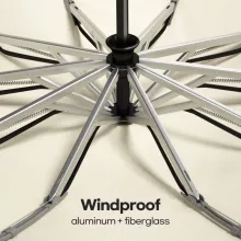 - Windproof and Strong: With 10 fiberglass ribs and a sturdy alloy and fiberglass skeleton, this umbrella stands strong against heavy winds.