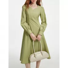 Embrace the essence of autumn and enhance your wardrobe with the Autumn Elegance Mid-Calf Dress. Designed to offer a perfect blend of style and comfort, this dress features a flattering sweetheart neckline and long puff sleeves, making it a quintessential piece for the modern office lady. Crafted from a luxurious mix of cotton and polyamide, the dress presents a soft, breathable fabric that ensures comfort throughout your day. Its empire waistline and draped detailing accentuate your figure, while the fit and flare silhouette offers a timeless appeal that transitions effortlessly from office to evening.