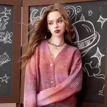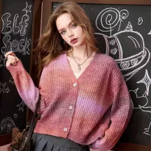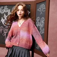 This sweater is designed to make you feel both comfortable and stylish, no matter the occasion. Its slight stretch ensures a perfect fit, while the soft yarn keeps you cozy without compromising on style. The gradient color adds a subtle pop to your outfit, making it ideal for autumn walks, coffee dates, or a casual day at the office. Plus, the V-neck design is great for layering with your favorite necklaces or scarves. No matter how you choose to style it, this cardigan is sure to elevate your fall and winter wardrobe.