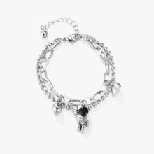 This bracelet is simply enchanting, with its captivating blend of cosmic and romantic motifs; the astronaut charm evokes a sense of wonder and curiosity, while the heart charm adds a touch of sweetness and affection. The double-layer design adds visual interest and makes it a versatile accessory that can be dressed up or down with ease.