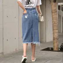 Our denim skirt boasts a classic mid-calf length that flatters every figure, paired with an empire waistline that cinches just right. The straight silhouette keeps it sleek and suitable for all body types, while the solid pattern makes it a breeze to mix and match with various tops and accessories. The skirt comes alive with its front-breasted buttons, providing not just secure closure but a dash of flair. With added decoration of functional pockets and subtle distressed details for that edgy look, it’s a garment that marries function with fashion.