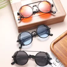 Introducing our latest collection of punk-inspired round sunglasses, a perfect blend of edgy fashion and practical functionality. Crafted for those who dare to stand out, these sunglasses are not just an accessory but a statement of individuality. Whether you’re hitting the streets or lounging at a café, these shades are designed to turn heads and start conversations.
