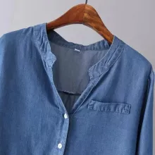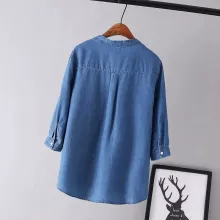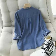 What sets this denim blouse apart is its unique combination of Korean fashion sensibilities with a classic denim feel. The V-neck collar adds a feminine touch, while the slight stretch in the fabric ensures a fit that moves with you. It’s not just about looking good, but also feeling good in your skin.