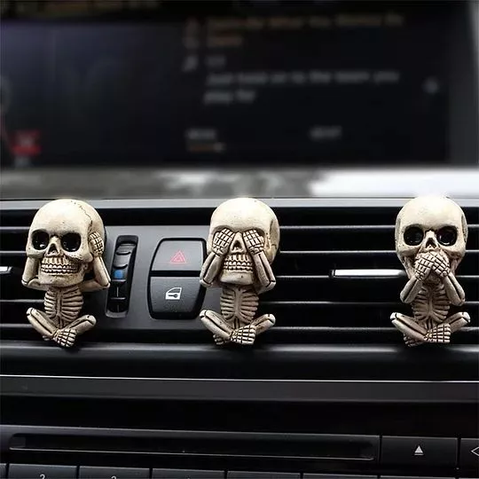 The skulls are a good size, not too large to overwhelm your car vent, but not so small that they go unnoticed. The details are impressive, especially given their affordable price. I appreciate that the vent clips are adjustable (both vertically and horizontally) and hold tightly in place, preventing them from slipping off. Furthermore, the scent is extremely strong, so you'll only need one in your car. You can use all three for decoration and simply add a scent tablet to one of the skeletons, but one is sufficient to keep your car smelling pleasant. Overall, a great buy if you're looking to decorate your car for Halloween.