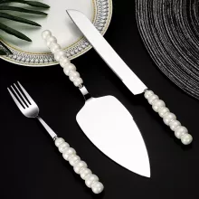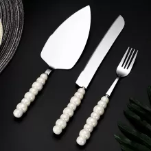 Make your dessert presentation truly special with this Creative Pearl Ceramic Handle Cake Knife and Spatula Set. Perfect for cutting and serving cakes, cheese, and even pizza, this beautifully designed set is both stylish and practical. Featuring a ceramic pearl handle that adds a touch of elegance, this stainless steel set is ideal for any occasion, from casual get-togethers to formal events. Add this to your kitchen collection, or gift it to someone who loves hosting and entertaining!