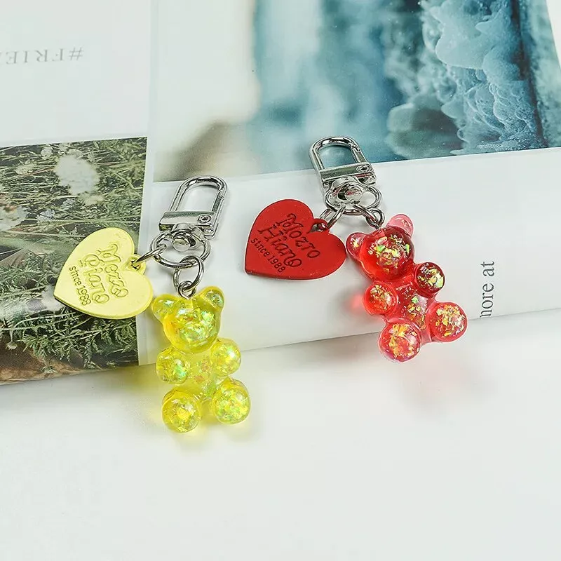 Introducing our latest addition to your daily essentials – the Cute Cartoon Bear Heart Keychain. This charming accessory combines both whimsical design and practicality, making it an ideal companion for anyone who loves to add a touch of cuteness to their everyday life. Crafted with high-quality zinc alloy and resin, this keychain is not only durable but also exudes a playful elegance that is hard to resist.