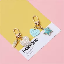 Constructed from high-quality metal and adorned with imitation pearls, each keychain exudes elegance and charm. The intricate design features a charming seashell and starfish motif, capturing the essence of a fantasy sea world.