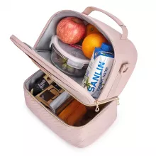 I'm loving my new lunch bag! It's so roomy and keeps everything super cold. The double-decker design is a stroke of genius, allowing me to separate hot and cold items easily. 😊 And it's also so beautiful!