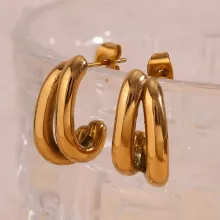 Double Layer Banana Shaped 18K Gold Plated Earrings