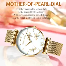 Whether you’re dressing up for a formal event or keeping it casual for a day out, this Dragonfly Design Women’s Watch is the perfect accessory. The delicate dragonfly design and shimmering oyster shell dial make it ideal for adding a touch of luxury to your look, while the stainless steel band ensures durability and versatility. This timepiece is an excellent choice for women who want to blend elegance with nature’s beauty.