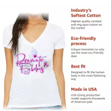 The fabric of our shirt is super soft, lightweight, breathable, and cozy. Dramatic Women’s V-Neck T-Shirt features a modern feminine fit, deep V-neck, short sleeves and superior Airlume combed and ring-spun cotton.