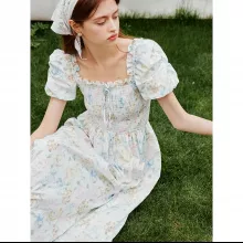 Elegant Floral Square Neck Summer Dress for Women