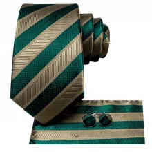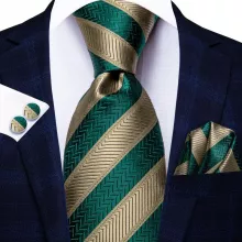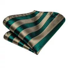 Versatile and Stylish: This necktie set is perfect for business attire, formal events, weddings, and parties. Its classic green striped design adds a touch of elegance to any suit or blazer, making it a versatile addition to your wardrobe.