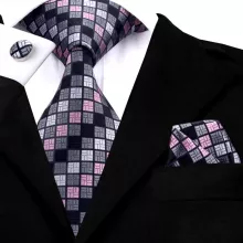When it comes to enhancing your wardrobe, this grey plaid silk tie set is unmatched in quality and style. It is not just a tie; it’s a fashion statement that speaks to your taste and personality. The combination of silk and a contemporary plaid design makes it versatile enough for both formal and semi-formal events. It is especially perfect for weddings, where you want to stand out while blending seamlessly with the decor. Additionally, the inclusion of cufflinks and a pocket square adds a polished touch to your ensemble, ensuring you are well-prepared for any occasion.