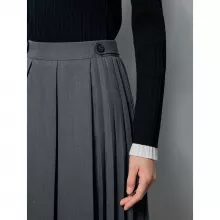 Our pleated skirt is designed for the modern woman who values both style and comfort. The high-waist cut accentuates your figure while the A-line silhouette allows for easy movement. The non-stretch fabric ensures a tailored fit that maintains its shape throughout the day. Whether you’re dressing up for a day at the office or a casual outing, this skirt provides a versatile foundation for a variety of outfits. The solid color and elegant button detail add just the right amount of sophistication to make you stand out in any crowd.