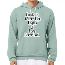Home / Fashion Accessories / Family Where Life Begins and Love Never Ends Sponge Fleece Hoodie – Cute Hoodie – Quotes Hooded Sweatshirt