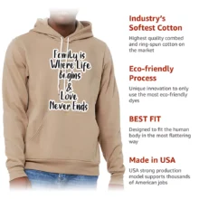 Family Where Life Begins and Love Never Ends Sponge Fleece Hoodie is made of lightweight breathable cotton and polyester, making it comfortable to wear. Our designers pay attention to every detail of the design to make you look the best.