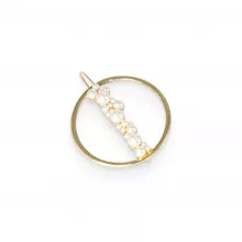 This stunning Faux Pearl Hair Clip has a lovely golden tone and is decorated with faux pearls. Size: 2.6 in.*2.6 in. Weight: 0.5 oz.