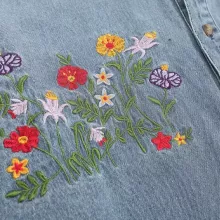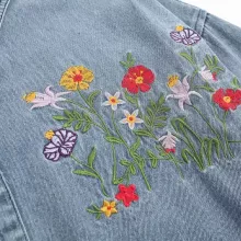 - Timeless blue denim with vibrant floral embroidery