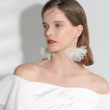 These insanely cute Flower Earrings are made of organza and enchased with rhinestones. Size: 3.9 in.*3.9 in. Weight: 0.53 oz.