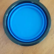 This blue silicone collapsible bowl is the perfect accessory for your dog or cat to feed or drink.