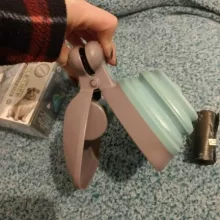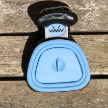 This thing seems silly to have, but it is a big help. No more warm squishy feeling when picking up after my dog. I love that it works with standard poop bags since I have so many of them. It’s a huge plus that this thing stays clean too. Simply put this device into a poop bag, open it, push the bag into the “jaw” and secure it in the silicone teeth. Once you’re done picking up, you can simply leave the jaw closed, pull the back back around the device, and tie it then open the jaw over the trash and boom, mess averted.
