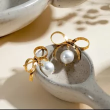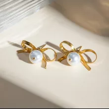 Add a touch of timeless sophistication to your jewelry collection with our 18K Gold Plated Stainless Steel Bowknot White Pearl Earrings. Perfectly blending classic charm with modern style, these earrings are designed to turn heads and enhance any outfit. Crafted from high-quality stainless steel and adorned with lustrous white pearls, they offer a refined look that’s both elegant and durable.