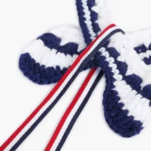 The adjustable design ensures that it grows with your pet, offering a comfortable fit without being too tight or restrictive. With its navy blue color and hand-knitted style, this collar adds a touch of elegance, making it perfect for special occasions, family photos, or everyday wear. Whether your pet is enjoying some downtime or showing off their stylish look to the world, this crochet collar is a must-have accessory.