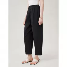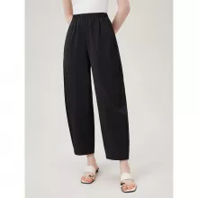 Featuring a slight stretch, these trousers move with you, providing all-day comfort whether you’re at work or on the go. The pleated front adds a refined detail that elevates the classic design, making them perfect for creating a polished, professional look or a relaxed, stylish outfit. The elastic waist ensures ease of wear, while the ankle-length design pairs effortlessly with a range of footwear options, from loafers to ankle boots.