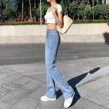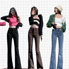 What sets our jeans apart is the perfect fusion of Korean-inspired fashion with practicality. The full-length flare creates a slimming effect, ideal for juniors and women who seek a blend of trend and tradition. With a choice of four fashionable colors, these jeans transition effortlessly from a formal office setting to a casual evening out. The impeccable tailoring guarantees a fit that flatters your shape, while the classic details like a mid-rise waist and zip closure uphold timeless sensibilities.