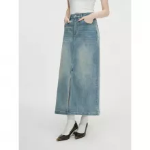 Embrace timeless style with our High Waist Retro Denim A-Line Skirt. This classic piece combines the durability of denim with a chic, modern design. The high waist and front split add a contemporary twist to a vintage look, making it perfect for both everyday wear and special occasions.