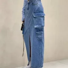 Step into the seamless blend of classic and contemporary with our High Waist Vintage Denim Cargo Skirt. Perfect for those who cherish a unique fashion statement, this ankle-length skirt is a tribute to the resilient spirit of the denim culture, tailored for the fashion-forward woman. With spring and summer on the horizon, it’s time to refresh your wardrobe with a piece that stands out in simplicity and style.