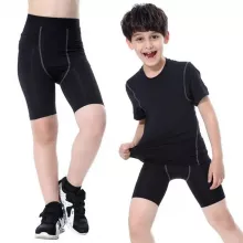 Made from a high-quality blend of Spandex and polyester, these sports shorts offer both flexibility and breathability. The quick-dry feature ensures that your child stays comfortable and dry, even during the most intense activities. The compression fit design not only supports their muscles but also enhances performance by reducing muscle fatigue. Available in a sleek black color, these shorts are as stylish as they are functional.