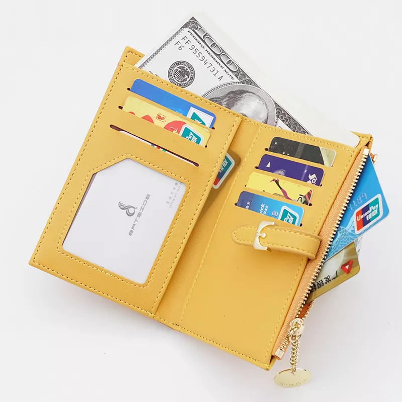 Introducing a stunning accessory designed to keep your essentials organized and accessible – the Luxury Compact Multi-Card Holder Wallet with Wristband. Available in eye-catching pink, yellow, and black, this wallet is the perfect blend of style and practicality. Crafted with the modern woman in mind, it offers a sophisticated way to carry your cards, coins, and cash.