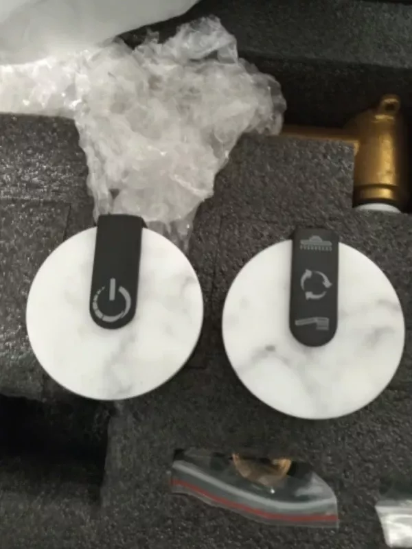 This faucet and handheld shower set is a true showstopper in my bathroom. The marble handles feel luxurious and add a touch of opulence. Its water flow impresses me every time, and it's become a conversation piece among guests. The design strikes a perfect balance between elegance and modern flair.